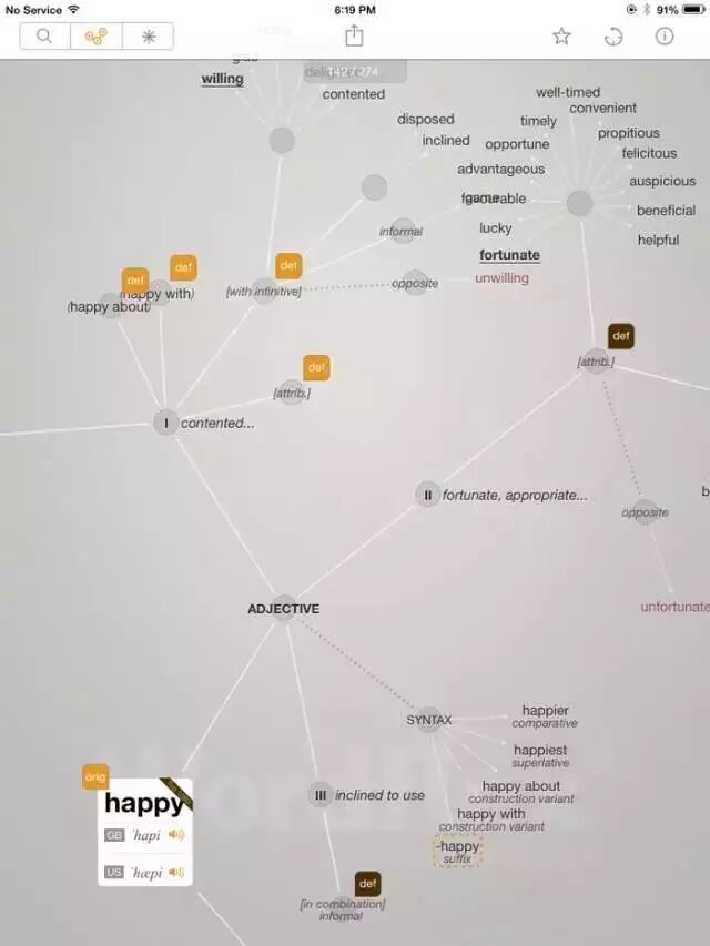 与上一个Visuwords有点相似,也是出mindmap帮你开脑洞的神器,但是比它要更详细。比如我们输入一个“happy”